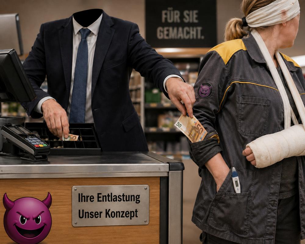 Auf der einen Seite sollen Firmen so belastet sein, dass der erste Krankheitstag der Beschäftigten auf den Prüfstand muss. Auf der anderen Seite sollen dieselben Betriebe bitte mal eben freiwillig bis zu 1.000 Euro pro Kopf auszahlen, damit die Politik eine Entlastung verkaufen kann.